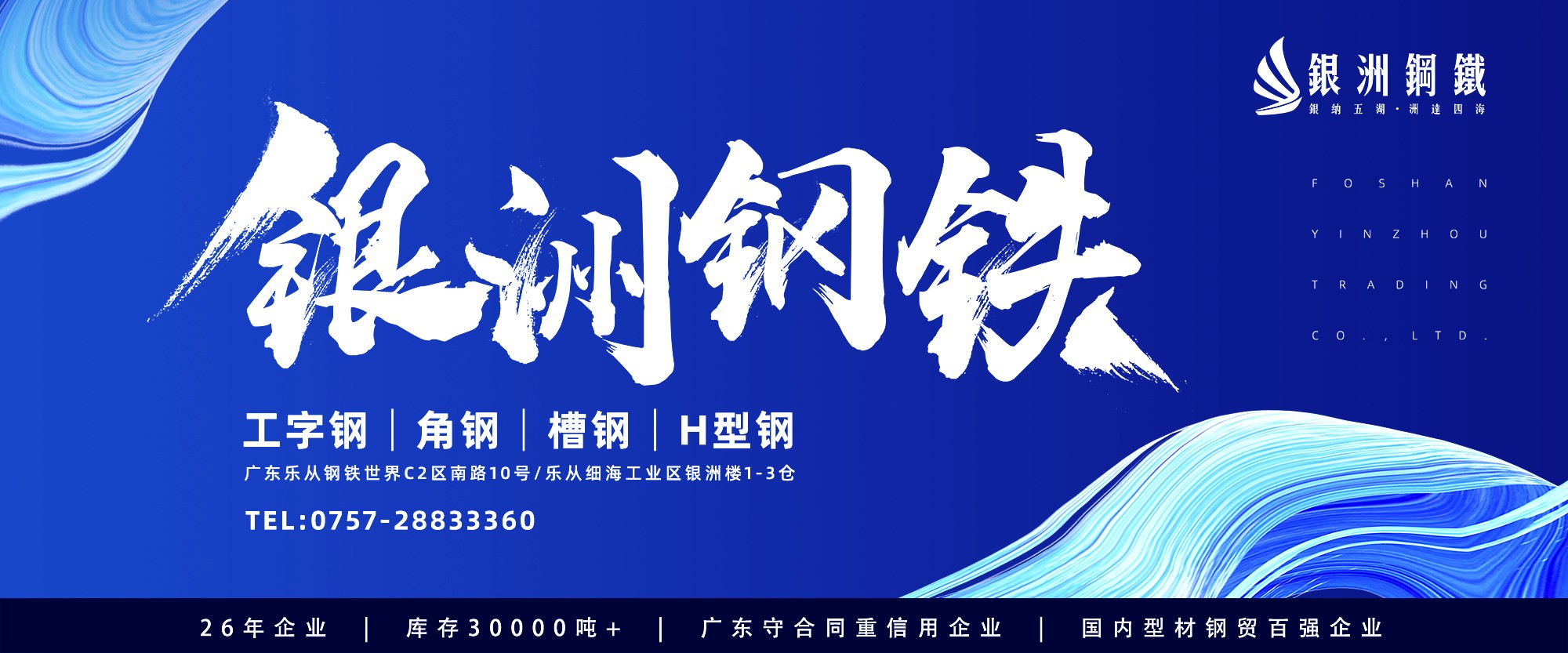 佛山市銀洲貿易有限公司于1997年創立,位于全國最大的鋼材批發物流市場--廣東樂從,經過20多年的發展,銀洲現已發展成華南地區大規模的型材銷售商,設有大型商場式門市及室內倉庫面積達2萬平方米,是一家從事鋼鐵貿易、加工、配送的大型民營企業。銀洲主要經營工字鋼、槽鋼、角鋼、H型鋼等多種鋼鐵產品現貨。